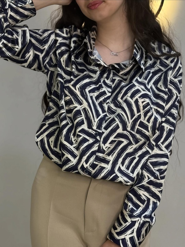 شومیز طرحدار جنس ساتن سیلک ترک شیک و دخترونه مناسب برای هر سلیقه ای سایزتون مطابق با جدول چک کنید